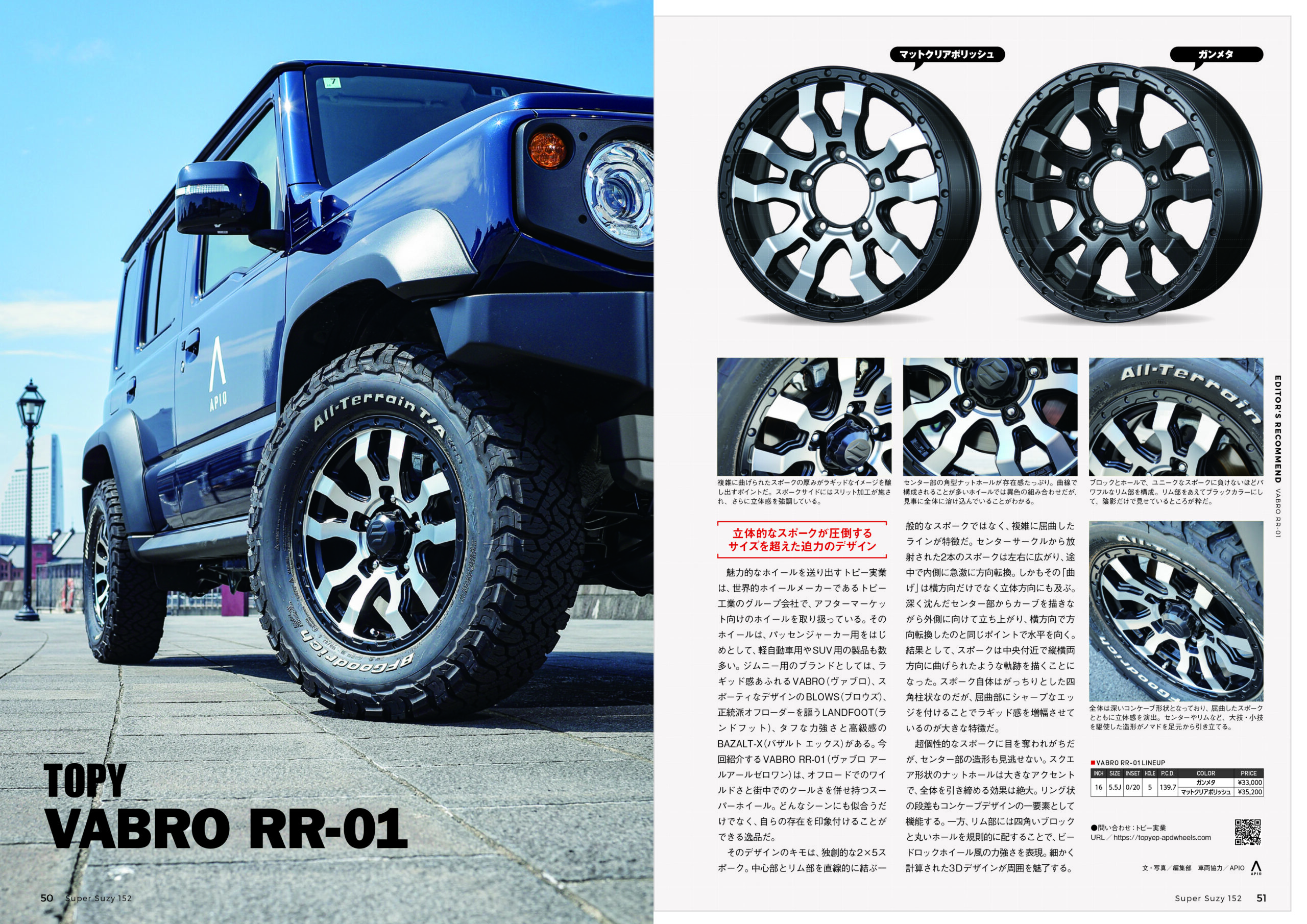 TOPYの4WD用ホイール VABRO RR-01(ヴァブロ アールアールゼロワン)を掲載いただきました。